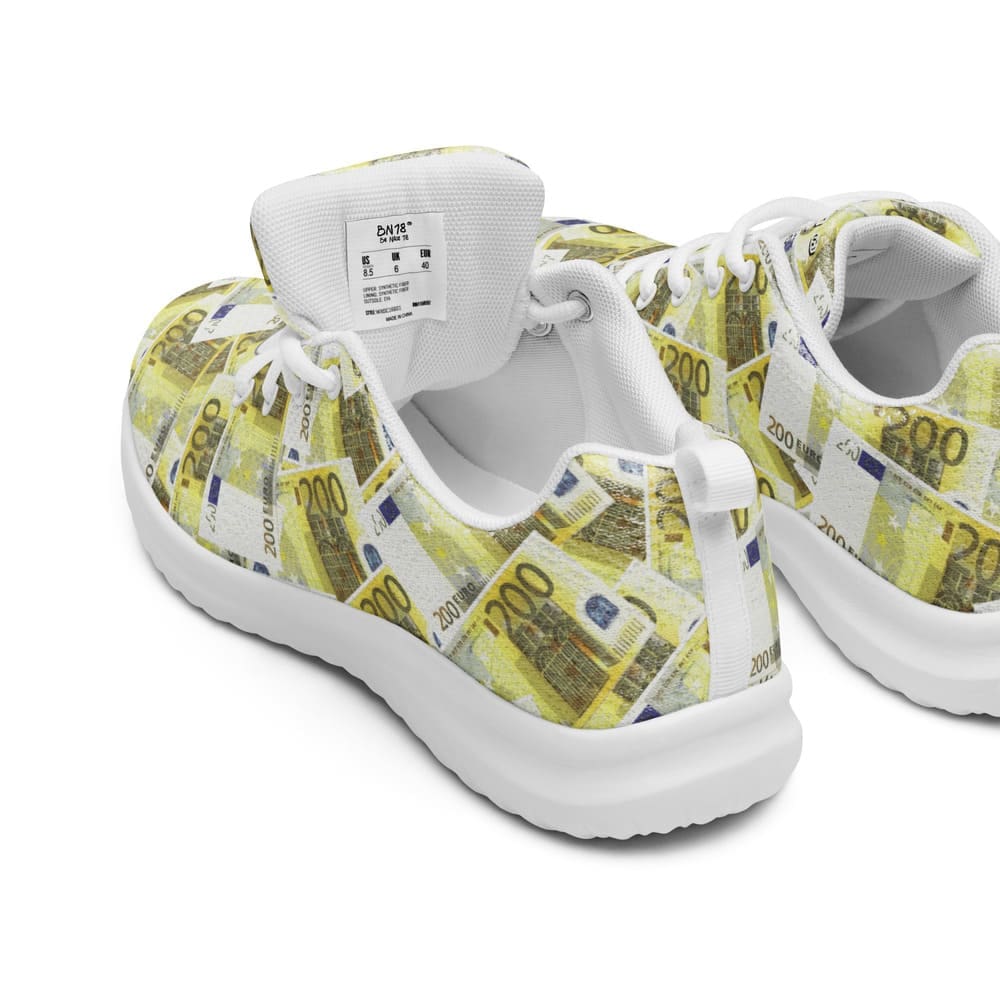 Con las zapatillas AtrapaBilletes 200€ darás un paso firme hacia tus metas más audaces. Inspiradas en el billete de 200€, estas zapatillas fusionan comodidad profesional y una estética que irradia prosperidad.